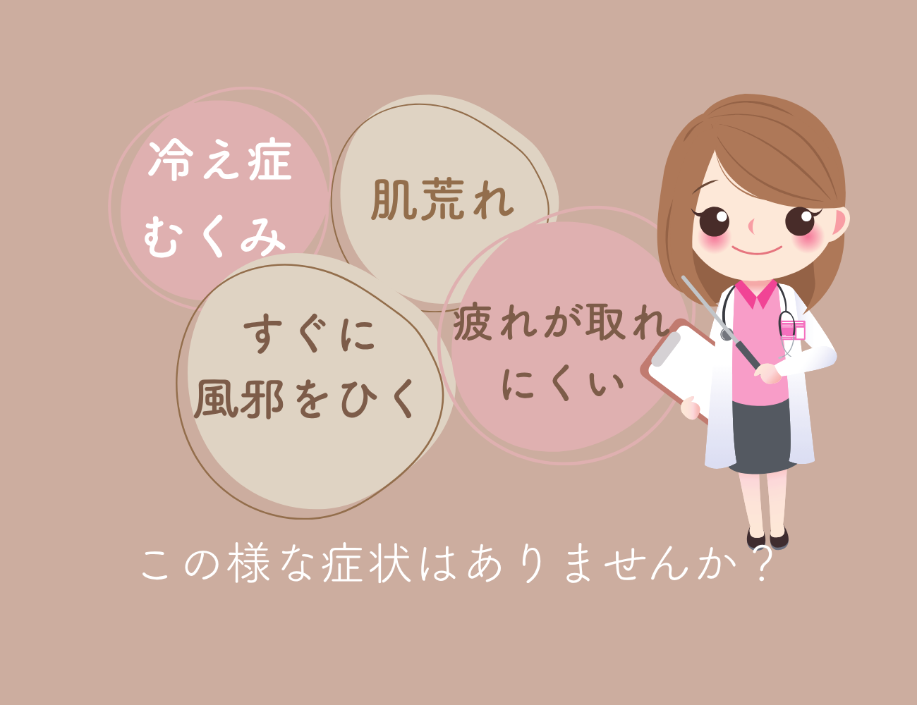 この様に自律神経失調症は様々な症状として出てきますが、改善は見込める病です!実はアトピー肌やニキビ肌と言ったトラブル肌の方も、この自律神経を整える事が大切になってきます!実はお肌だけの問題ではないんですよ!