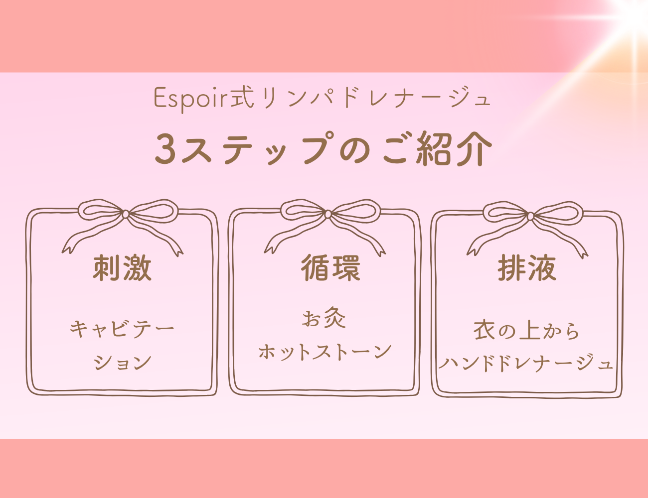 Espoir(エスポワール)では痛み・しびれ・自律神経失調症・お肌のトラブルなど女性が不調から解放され美しく健康な毎日を送れるケアを目指しています!